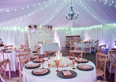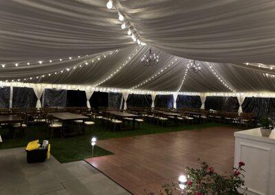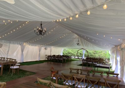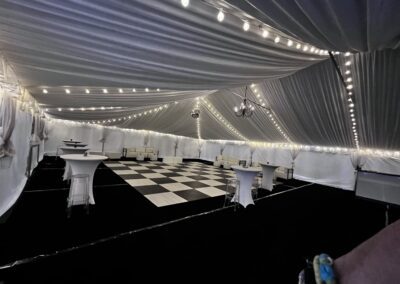 Our wedding tent liner and pole covers will add a finishing touch of sophistication and elegance to any event. These décor elements are used as a stylish way to hide the tent’s framework and soften the atmosphere while providing a beautiful setting to impress your guests!